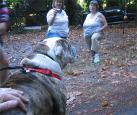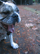 Closing the CottageOct. 15, 2005When we took in the cabin's sign for the winter, we discovered a lone bat sleeping underneath. He hung around long enough for a brief photo shoot then disappeared. Milo -- Fernando & Tabby's English bulldog -- was also a good sport for his photo shoot. |