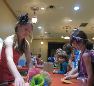 Every February, the girls' scout troops throw a themed mother-daughter tea. Last year it was Alice in Wonderland, this year was Faerie Glen.