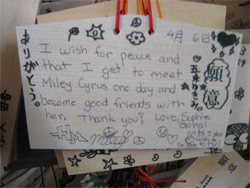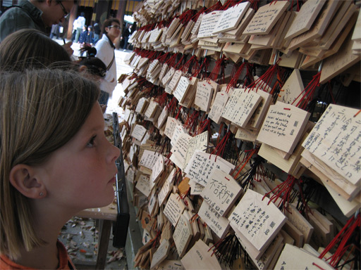 Third row: Ellie checking out the 500-yen prayer plaques
