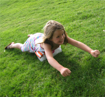 behind the ice blocks they were using to slide down this grassy hill.