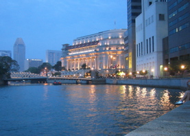 SingaporeMarch 20, 2005About a month ago, I called up our company's training office in New York to confirm the dates of a workshop I was supposed to attend in Florida this spring. I got to chatting with Barbara on the phone, and at one point she paused and said, "You know... we are having one in Singapore, too ... if you could go a few weeks earlier. We're trying to get people from North America to attend, too." I told her I just might be able to help. And a few weeks later, found myself wandering around Chinatown and Boat Quay along the Singapore River. Roger, our man in Singapore, took me out to the Raffles Hotel for Singapore Slings at the Long Bar, followed up by a tasty veal dinner. On Saturday, I wandered around exploring a bit, until I was rescued from my meandering by a hospitable Singaporean, Indy, who thanked me for showing her how to work the twilight mode on her new digital camera by showing me around a bit. |