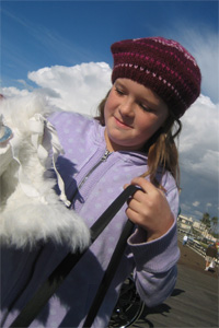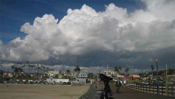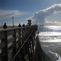 There is something calm and wonderful about a crisp winter weekend at the beach. Fewer crowds leave a little breathing room, making it easier to shop, to find a bargain on white furry boots, for example, or to stretch out on an empty bench on the pier, a new beach ball as your pillow. From the beach, you can look to the north and see snow on the San Gabriel mountains, just above Pasadena, where I grew up. In the other direction, Catalina is clearly visible. In the afternoon, we may grab a cup of coffee and a recent tabloid and head off for a stroll through Belmont Shore to see what's new, to get a haircut from a barber with saucy tales from post-war Asia, or to snatch up bargains as Belmont Teachers' Supply has its final clearance sale, after a lifetime of providing us with puzzles, coloring books, paperback biographies, and colored pencils.